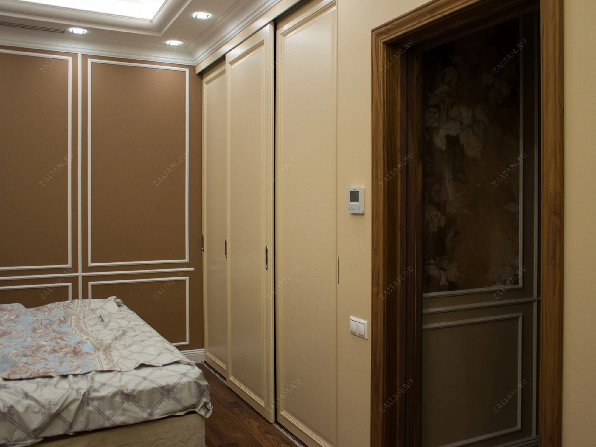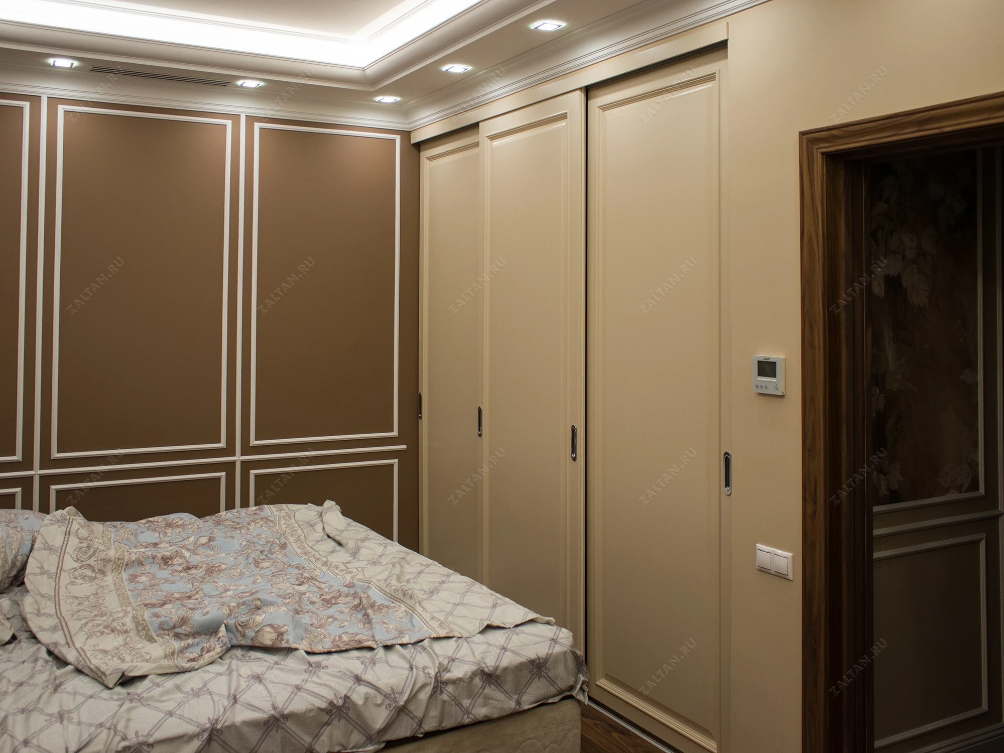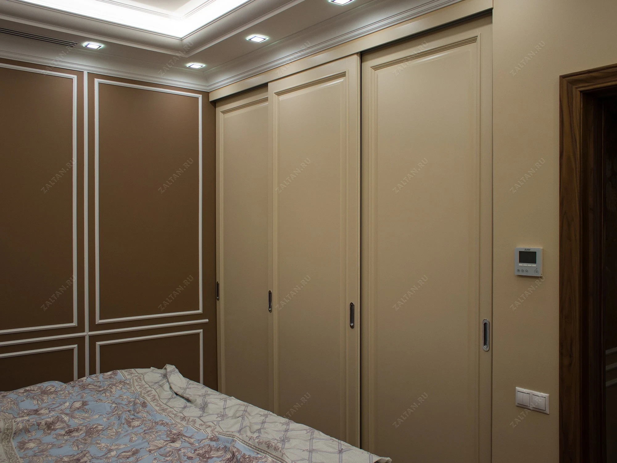 Встроенный шкаф-купе Хоновер для спальни, изготовлен из крашеного МДФ в классическом стиле. Этот шкаф с тремя раздвижными дверями элегантно встроен в нишу, создавая непрерывность интерьера и удобство использования.