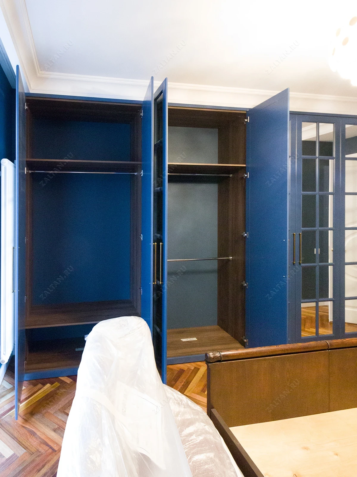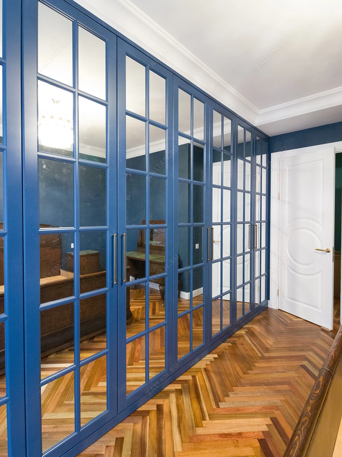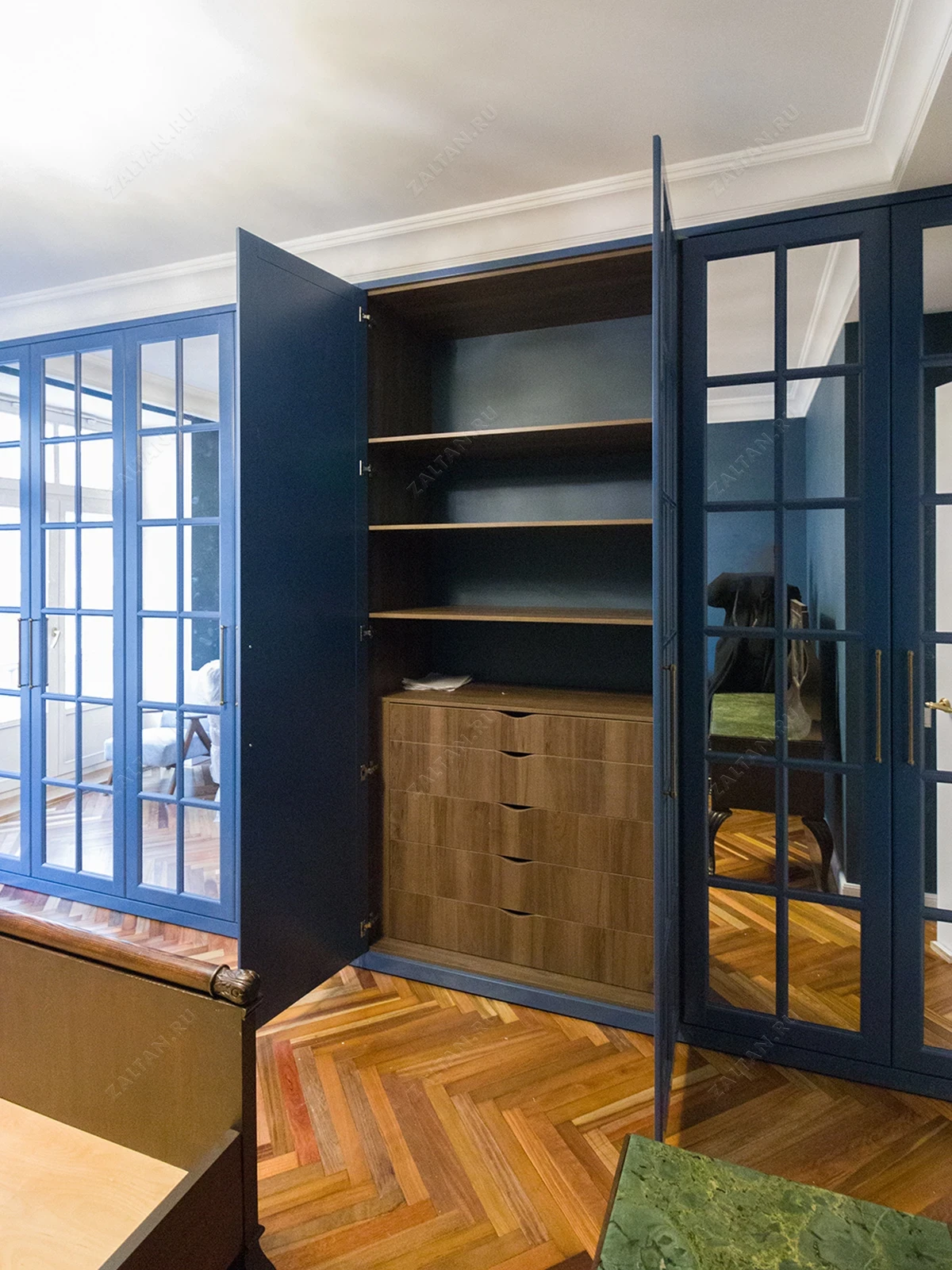 Большой синий шкаф с английской решеткой «Мэнли»