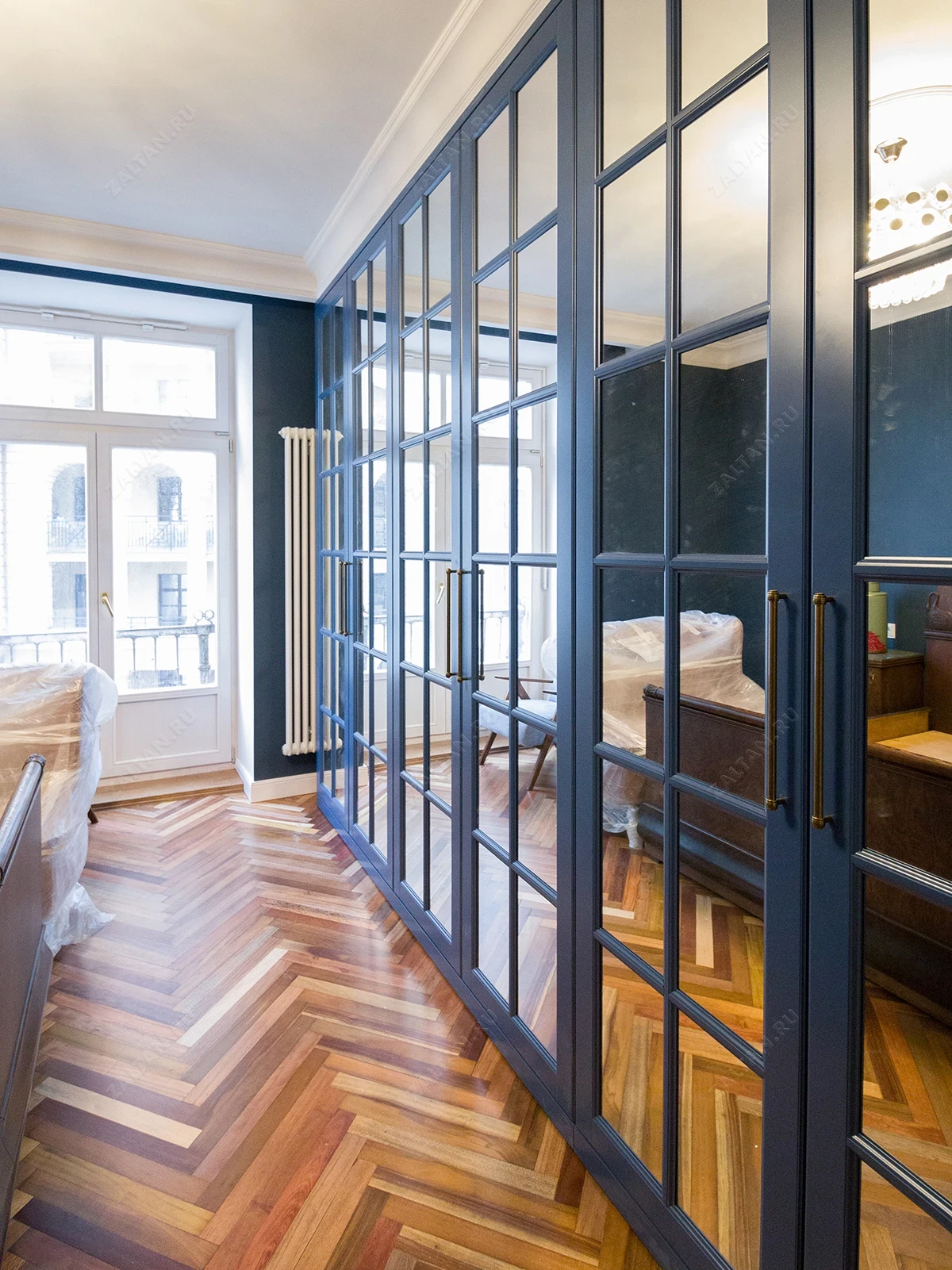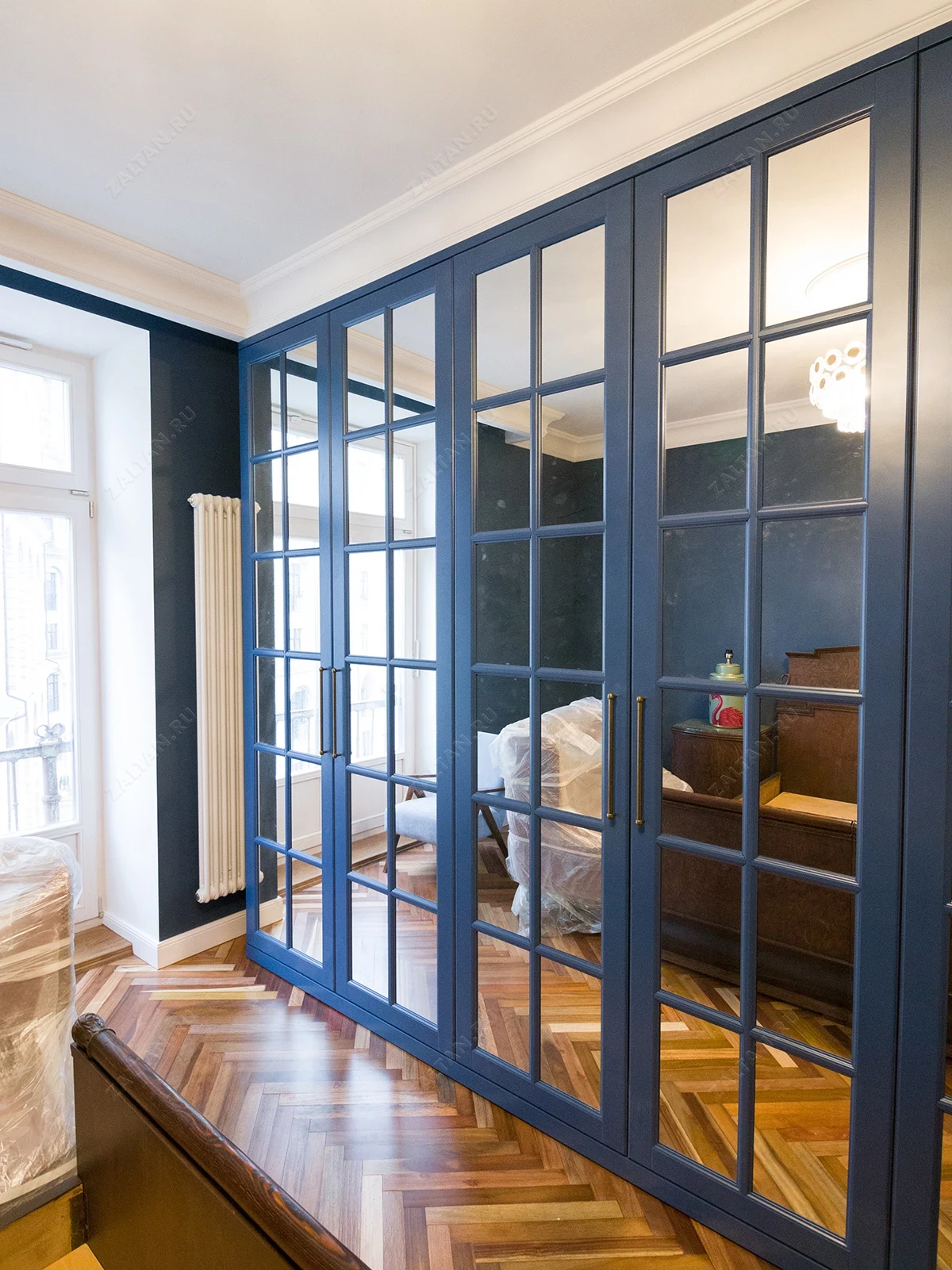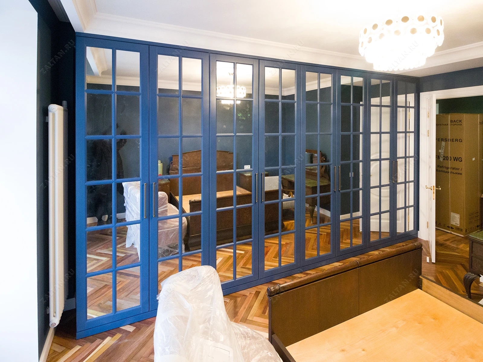 Большой синий шкаф с английской решеткой «Мэнли»