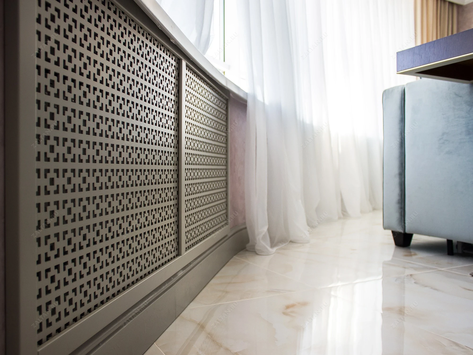 Стильные декоративные панели на экраны радиатора Лома, выполненные из крашеного МДФ с фрезерованным узором. Эти панели не только скрывают радиаторы отопления, но и служат элегантным элементом интерьера, добавляя помещению изысканности и завершенности. Они гармонируют с общим дизайном комнаты, дополняя мебельный гарнитур и создавая уютную атмосферу.