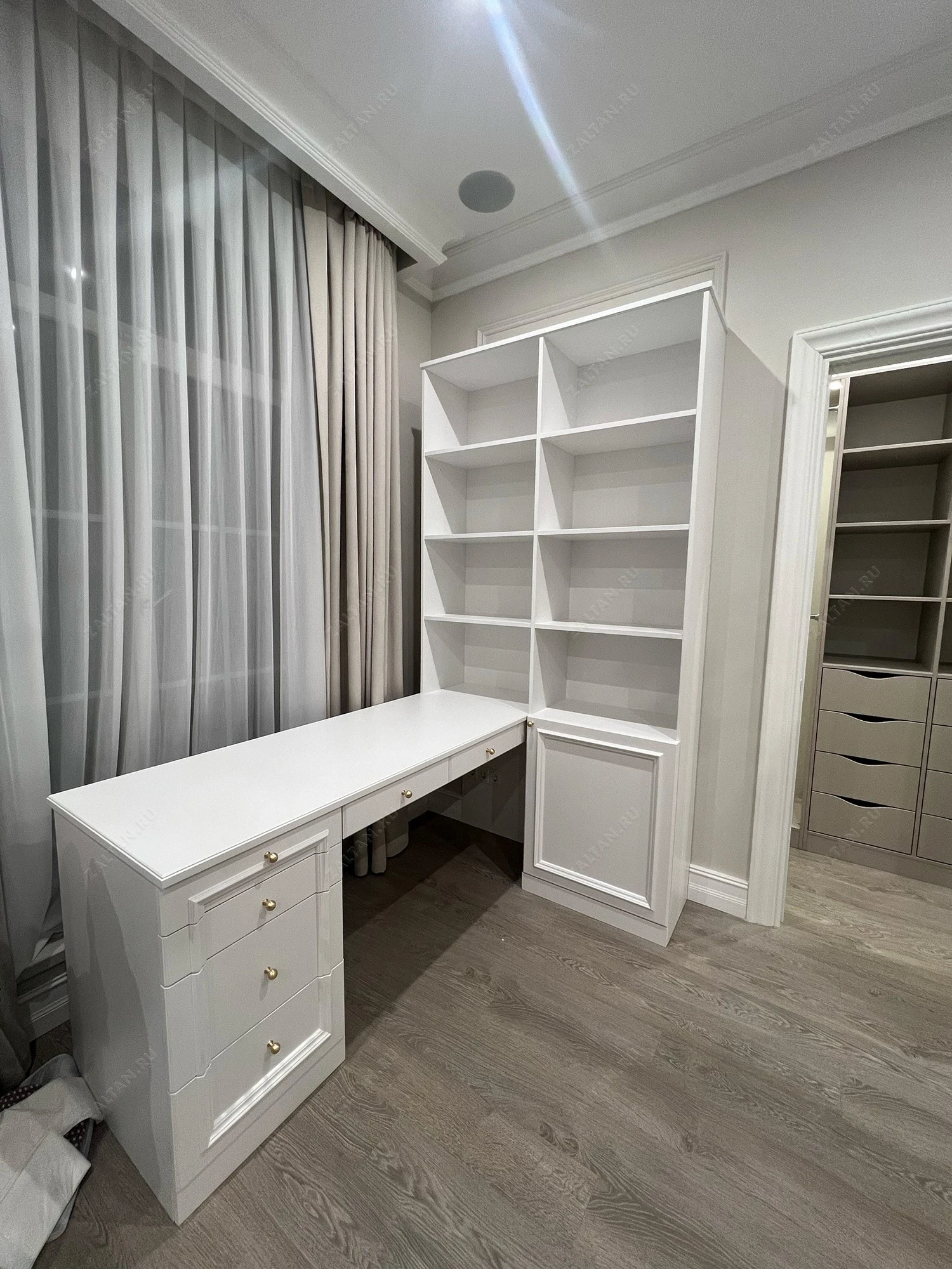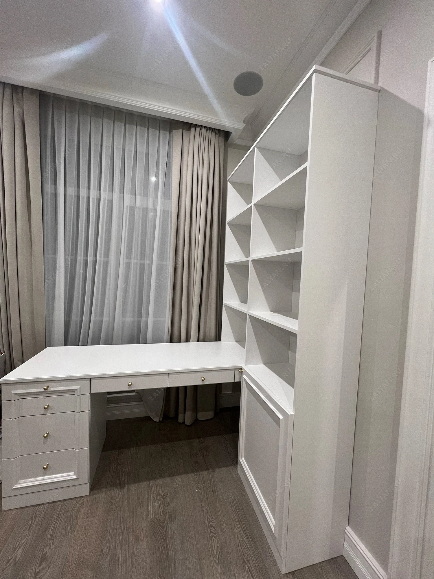 - Конструкция: Книжный шкаф со встроенным рабочим столом для экономии пространства.