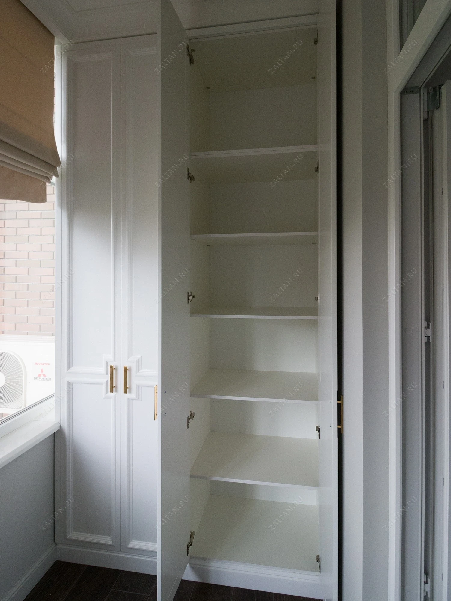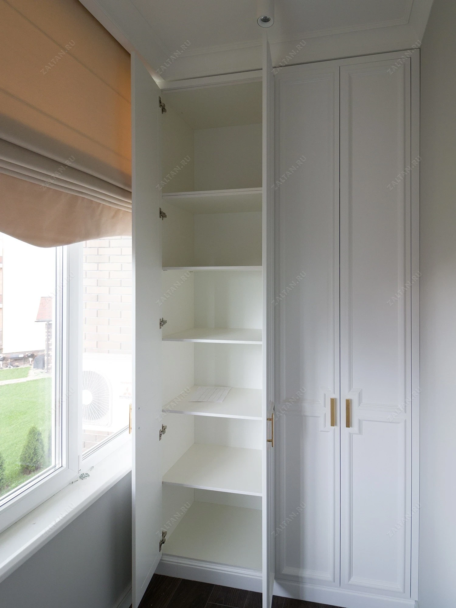 Встроенный шкаф Ковелл от ZALTAN идеально вписывается в пространство балкона, превращая его в функциональное и стильное продолжение вашего дома. Выполненный в классическом белом цвете с эксклюзивной фрезеровкой, шкаф добавляет элегантности и в то же время максимально использует доступное пространство.