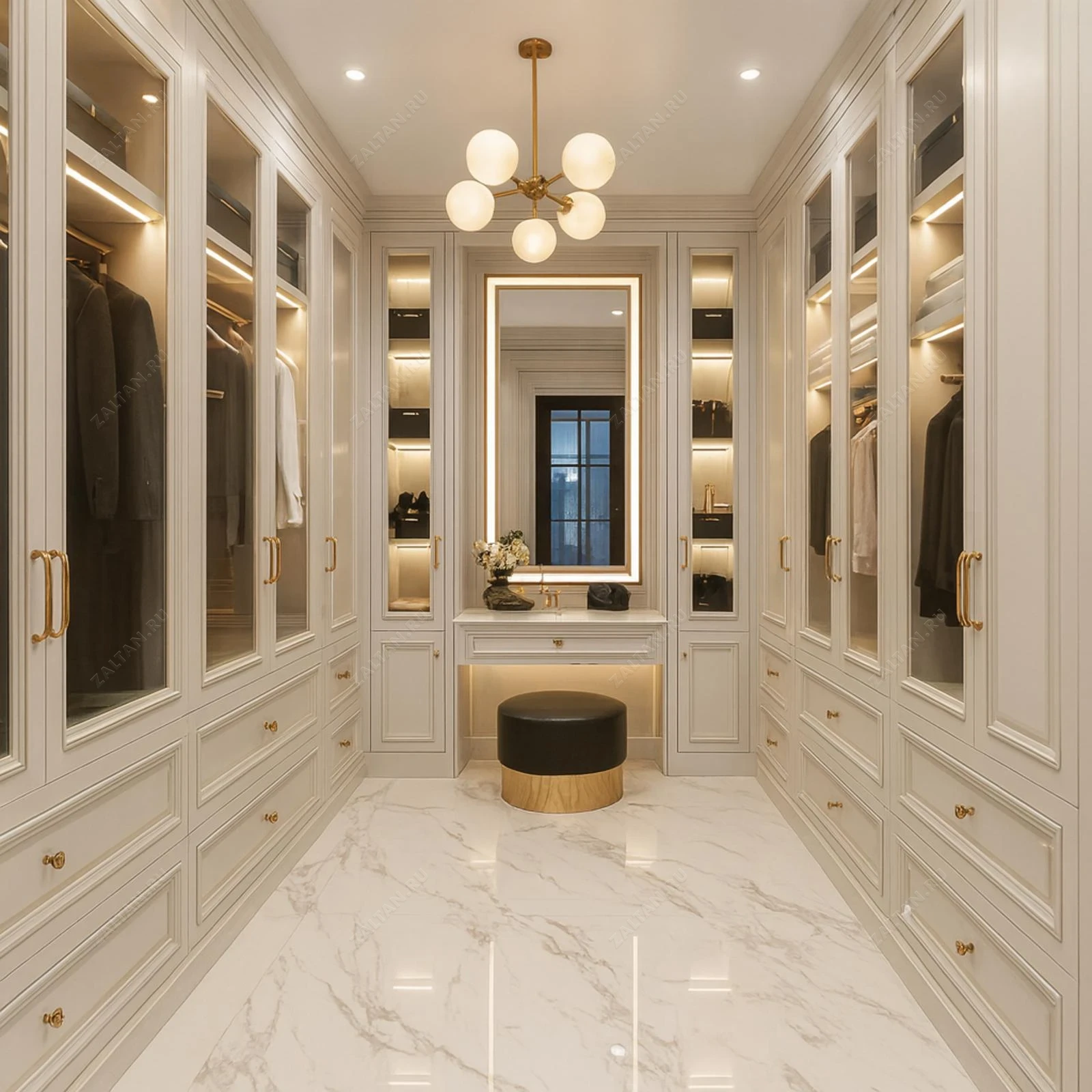 ОсобенностиГардеробные премиум класса / Гардеробные с подсветкой / Гардеробные с ящиками / Элитные гардеробные / С антресолью