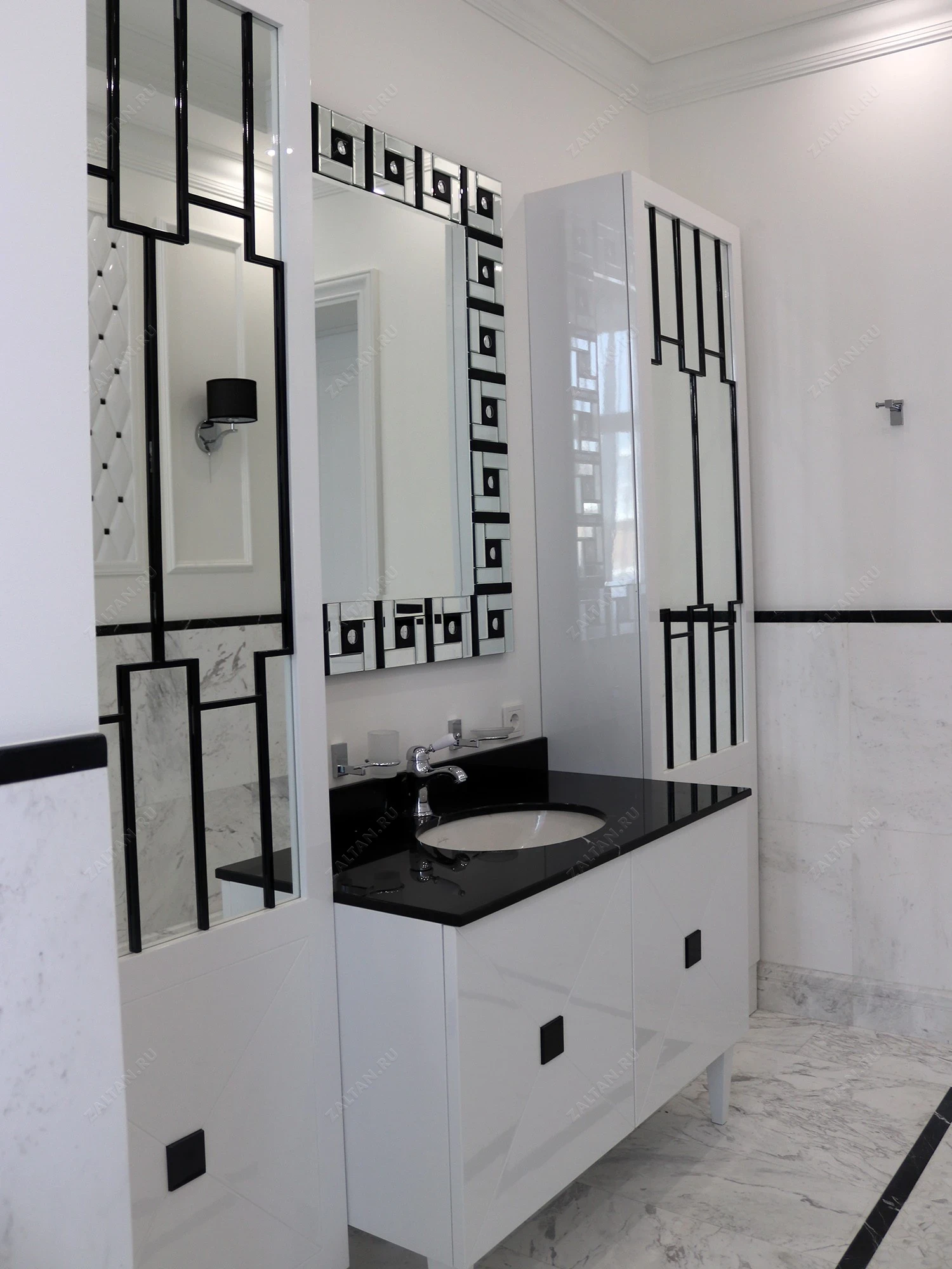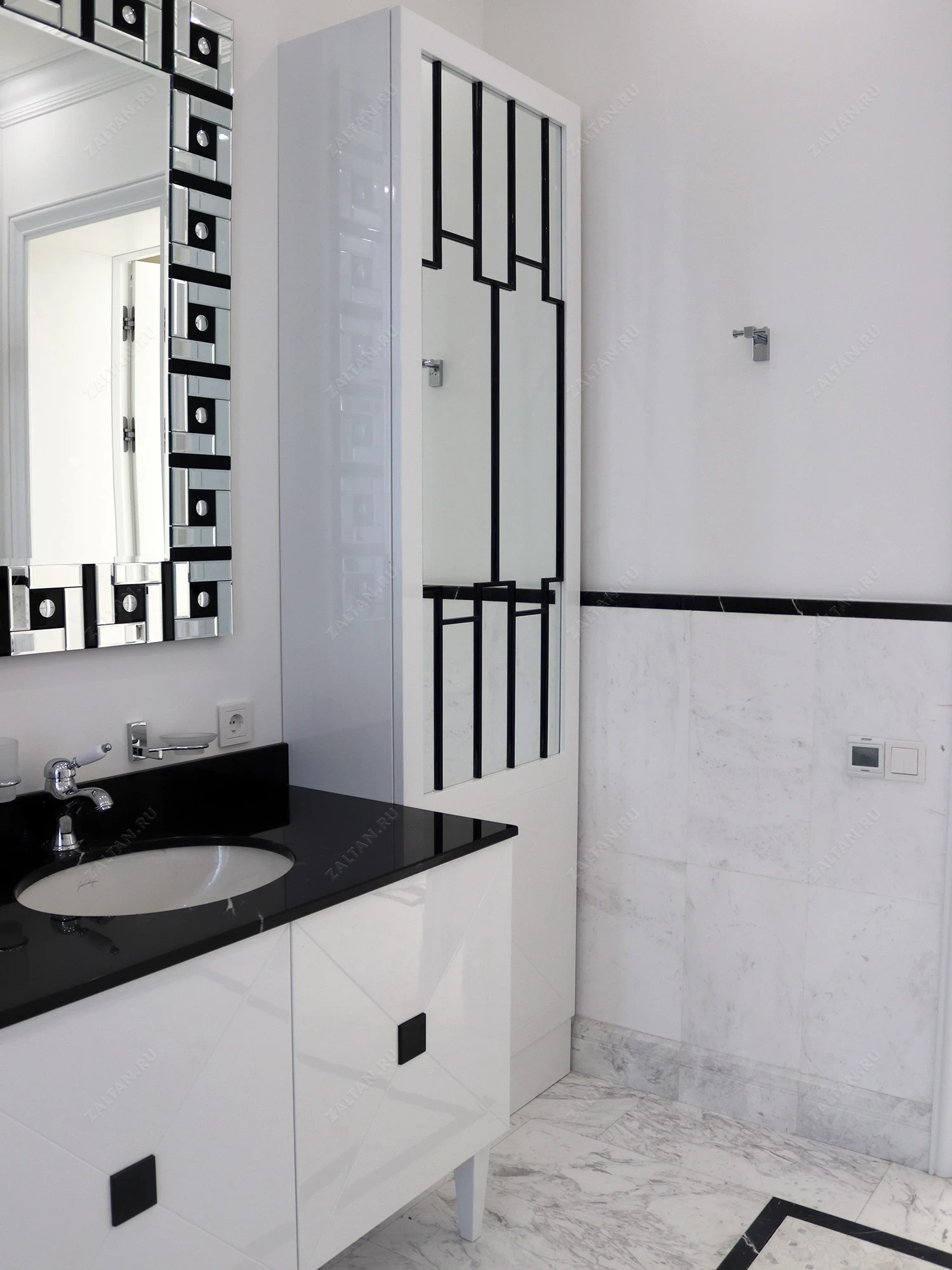 Глянцевая тумба и шкафы пеналы в ванную «Оберн»