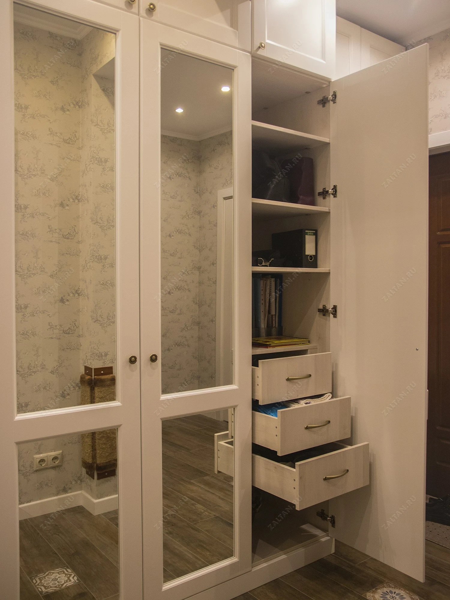 Прихожая Матер выполненная по индивидуальным размерам внесет в ваш коридор нотки классической элегантности. Это решение от ZALTAN сочетает в себе красоту и функциональность: открытая вешалка позволяет удобно размещать повседневную одежду, а закрытые зеркальные фасады создают ощущение простора и увеличивают освещенность.