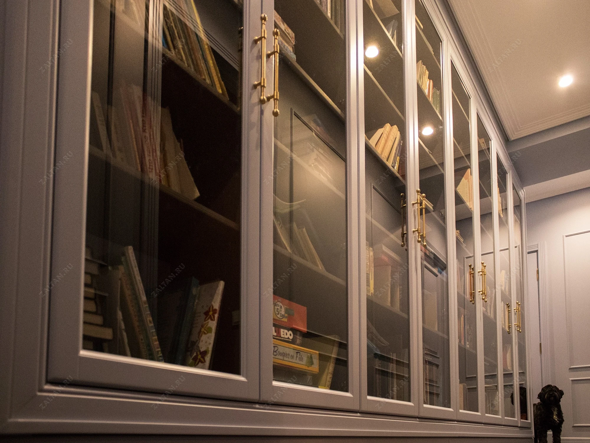 Величественный книжный шкаф Мансон предназначен для размещения в коридоре или библиотеке. Шкаф выполнен в классическом стиле, окрашен в элегантный серый цвет и декорирован эксклюзивной фрезеровкой, что придаёт ему особый шарм и благородство. Распашные двери из МДФ с вставками из стекла не только защищают литературные сокровища от пыли, но и позволяют любоваться ими без необходимости открывать шкаф.
