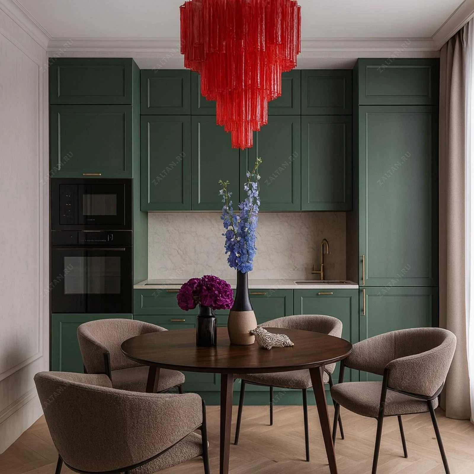 Премиальный кухонный гарнитур в неоклассическом стиле, выполненный на заказ по индивидуальным размерам. Панели с рамочной фрезеровкой и матовой эмалью, встроенная колонна для техники и высокий шкаф-буфет обеспечивают элегантный и функциональный вид.