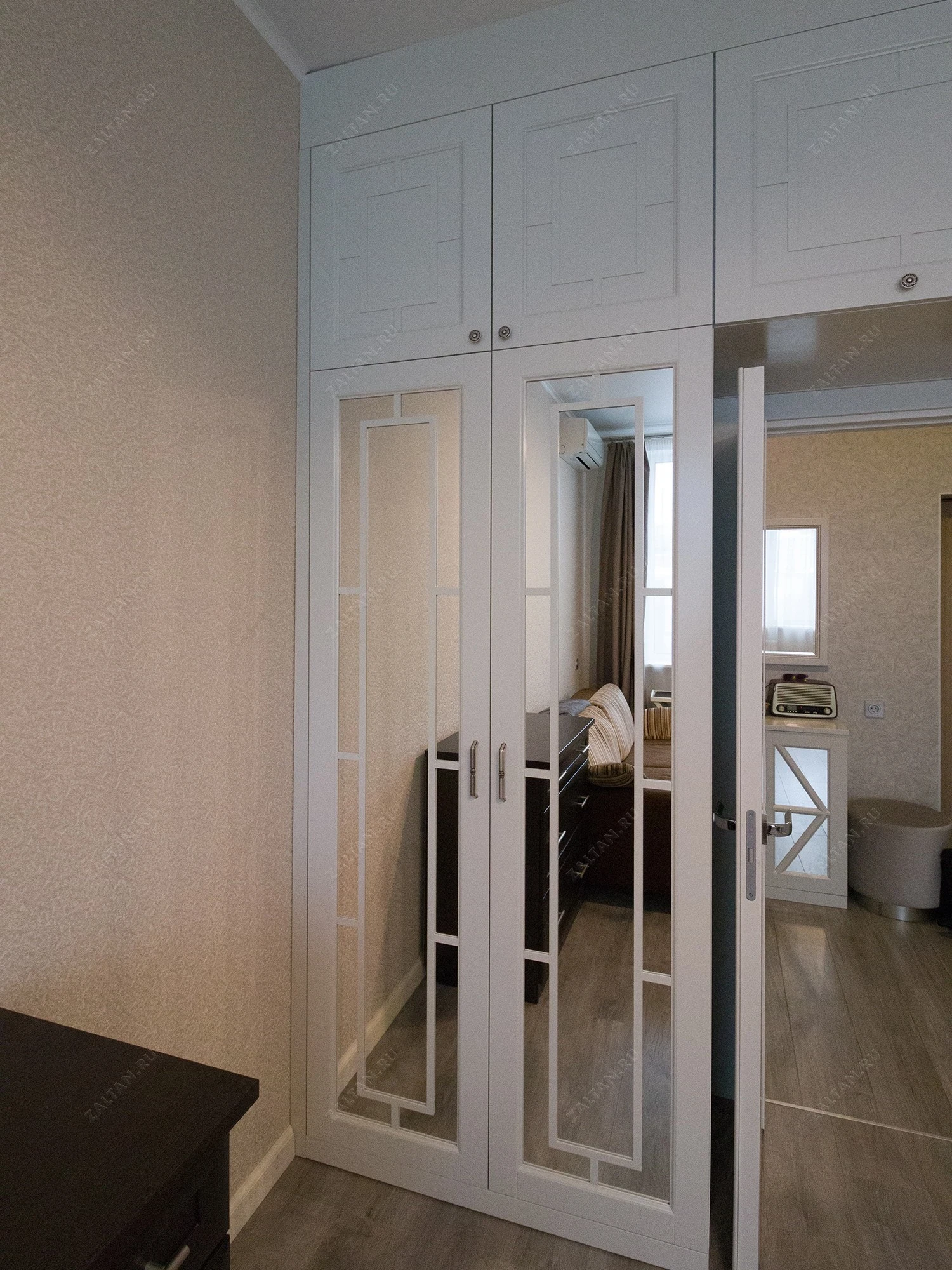 Этот шкаф не только увеличивает функциональность пространства, предоставляя дополнительное место для хранения, но и служит украшением интерьера, добавляя свет и визуальное пространство благодаря зеркальным элементам. Антресольные шкафы идеально подходят для хранения вещей, но не используются на ежедневной основе, таких как сезонные аксессуары, постельное белье или книги.