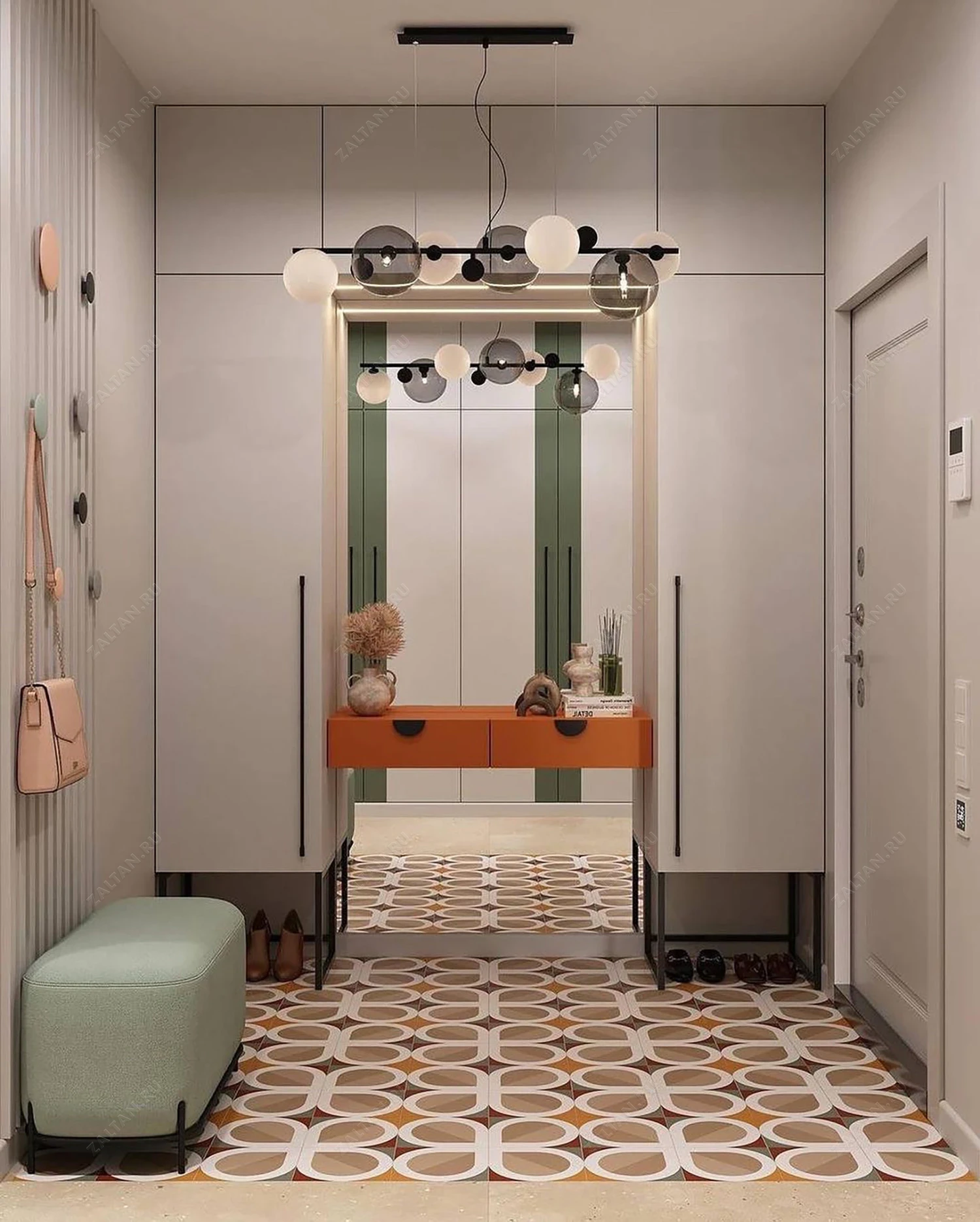 Шкаф-прихожая Тира от фабрики ZALTAN — это гармоничный комплект из двух изделий: стильной прихожей с зеркалом и вместительного шкафа, выполненных в едином дизайне. Модель сочетает в себе элегантность и функциональность, идеально подходя для современного интерьера. Прихожая с зеркальными вставками визуально расширяет пространство, а шкаф предлагает удобное хранение для одежды, обуви и аксессуаров.
