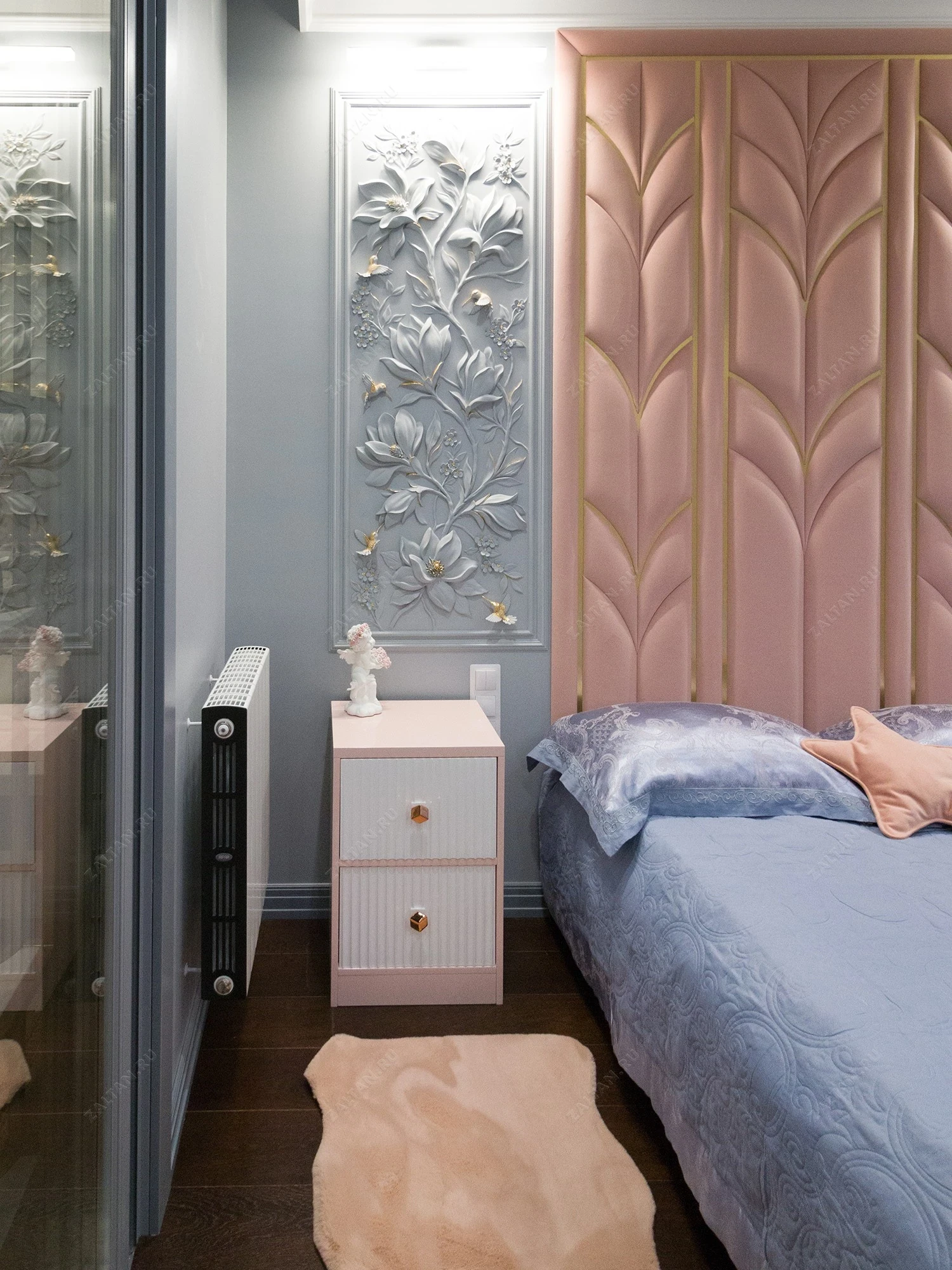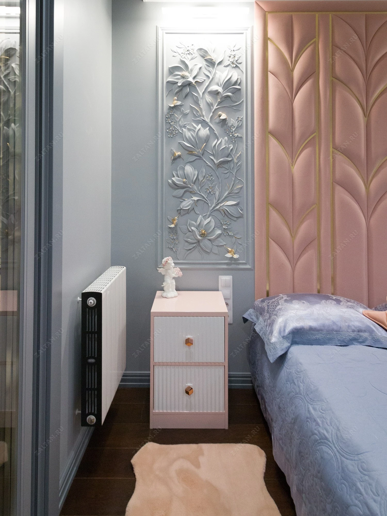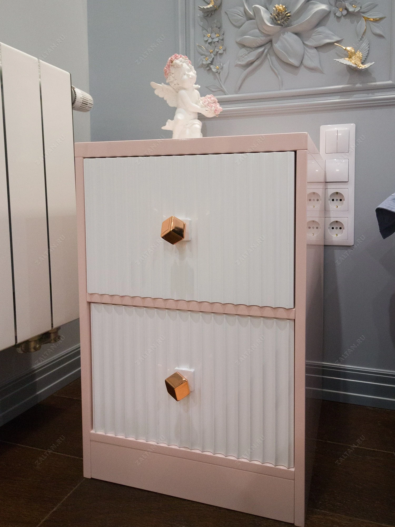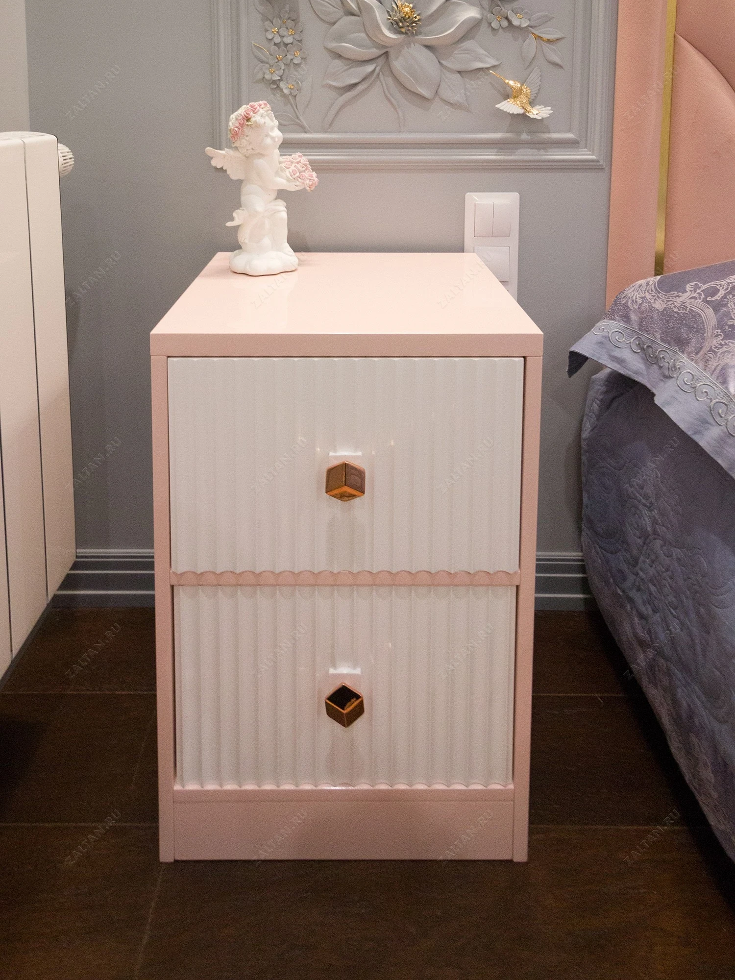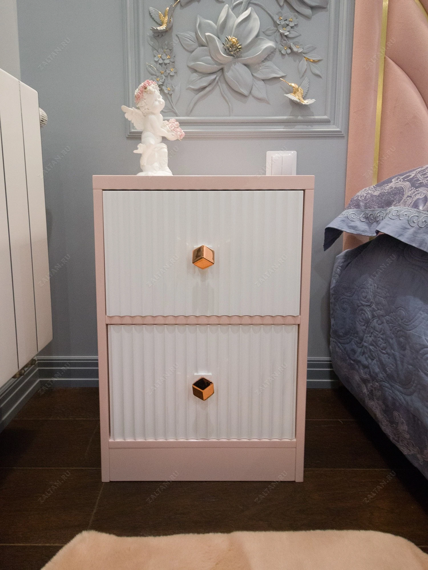Прикроватная тумба из коллекции Пальмира - идеальное дополнение для современной детской комнаты. Сочетание реечной фрезеровки и нежных розовых оттенков делает её не просто местом хранения, но и стильным элементом интерьера. Модернизированный дизайн подчеркивается прямыми линиями и минималистичными ручками, что придает тумбе современное и свежее ощущение.
