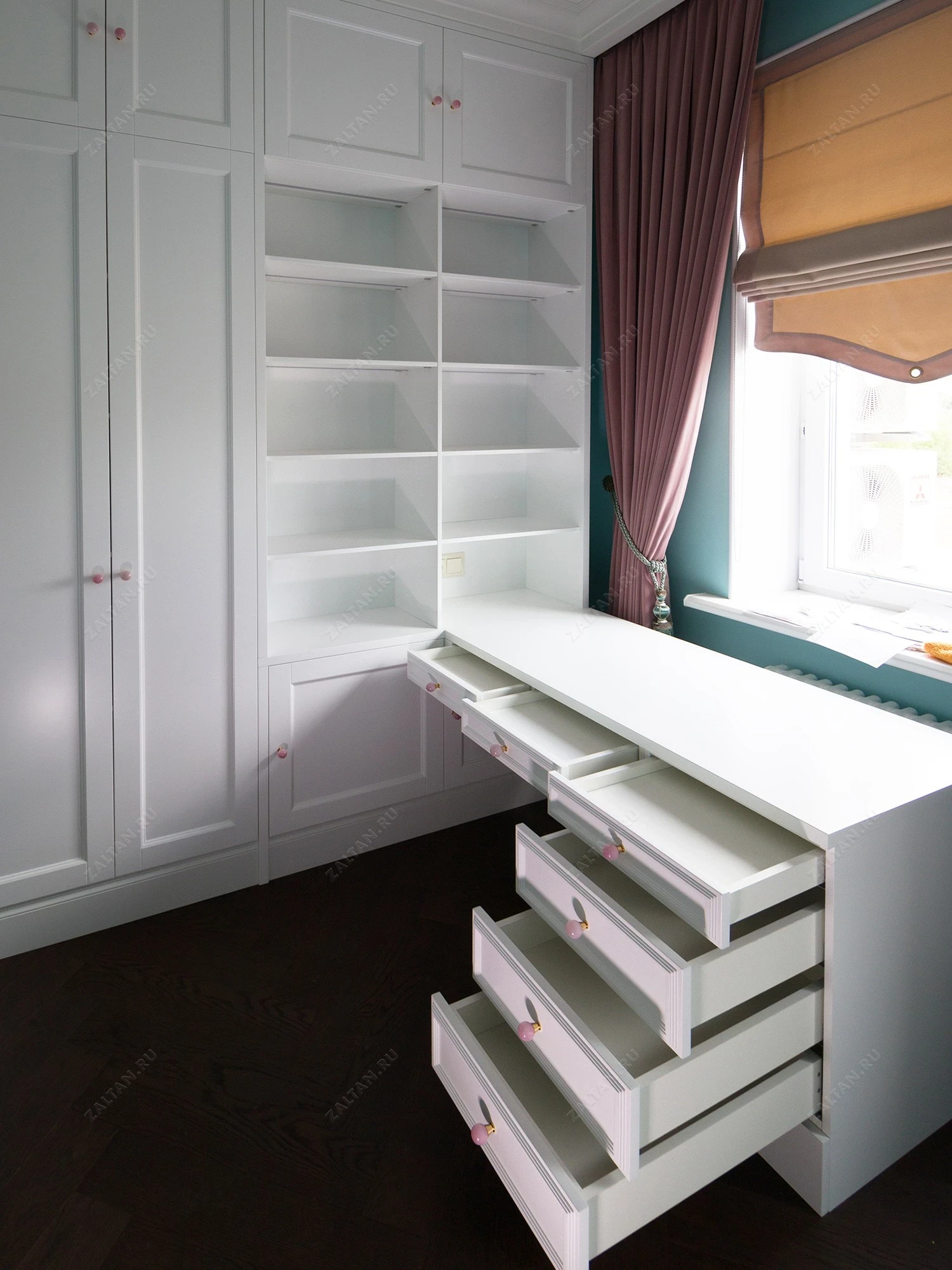 КонструктивРабочая зона вокруг окна / Угловая рабочая зона / Стеллаж / Встроенный