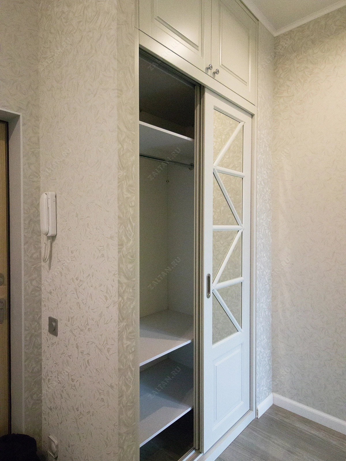 Элегантный классический шкаф-купе изготавливается на заказ компанией ZALTAN, что позволяет идеально вписать его в любую прихожую, учитывая индивидуальные размеры и потребности заказчика. Внутреннее пространство шкафа грамотно организовано: предусмотрены различные секции для хранения верхней одежды, обуви, аксессуаров и других необходимых вещей.
