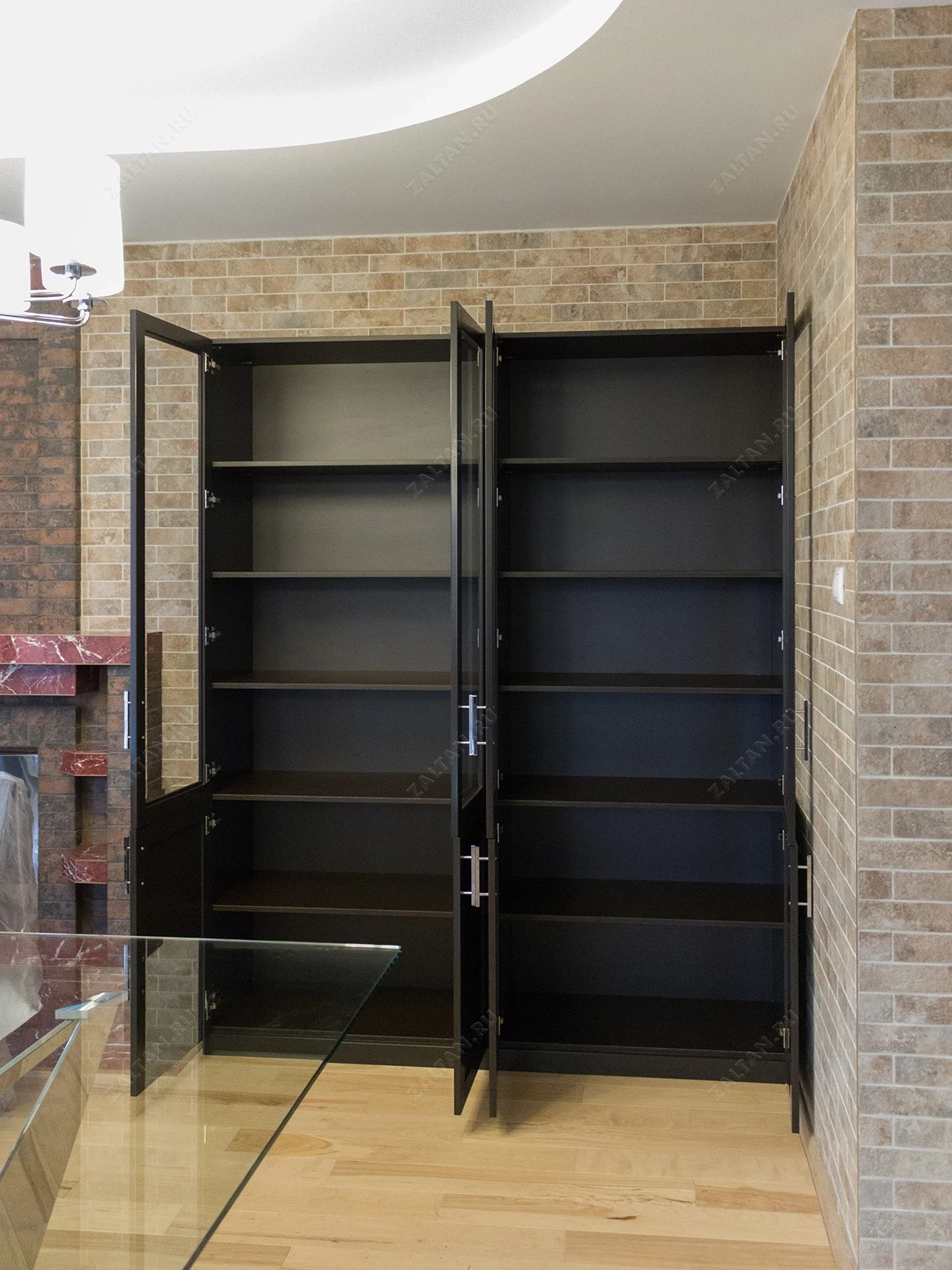 Элегантный корпусной шкаф Солон, представленный на фотографии, является отличным дополнением к интерьеру любой гостиной. Изготовленный компанией ZALTAN, шкаф обладает глубоким насыщенным оттенком, который придает помещению особую теплоту и уют. Стеклянные вставки в дверцах не только визуально облегчают конструкцию, но и позволяют удобно разместить предметы интерьера, которые хочется демонстрировать, например, коллекции книг или посуды.