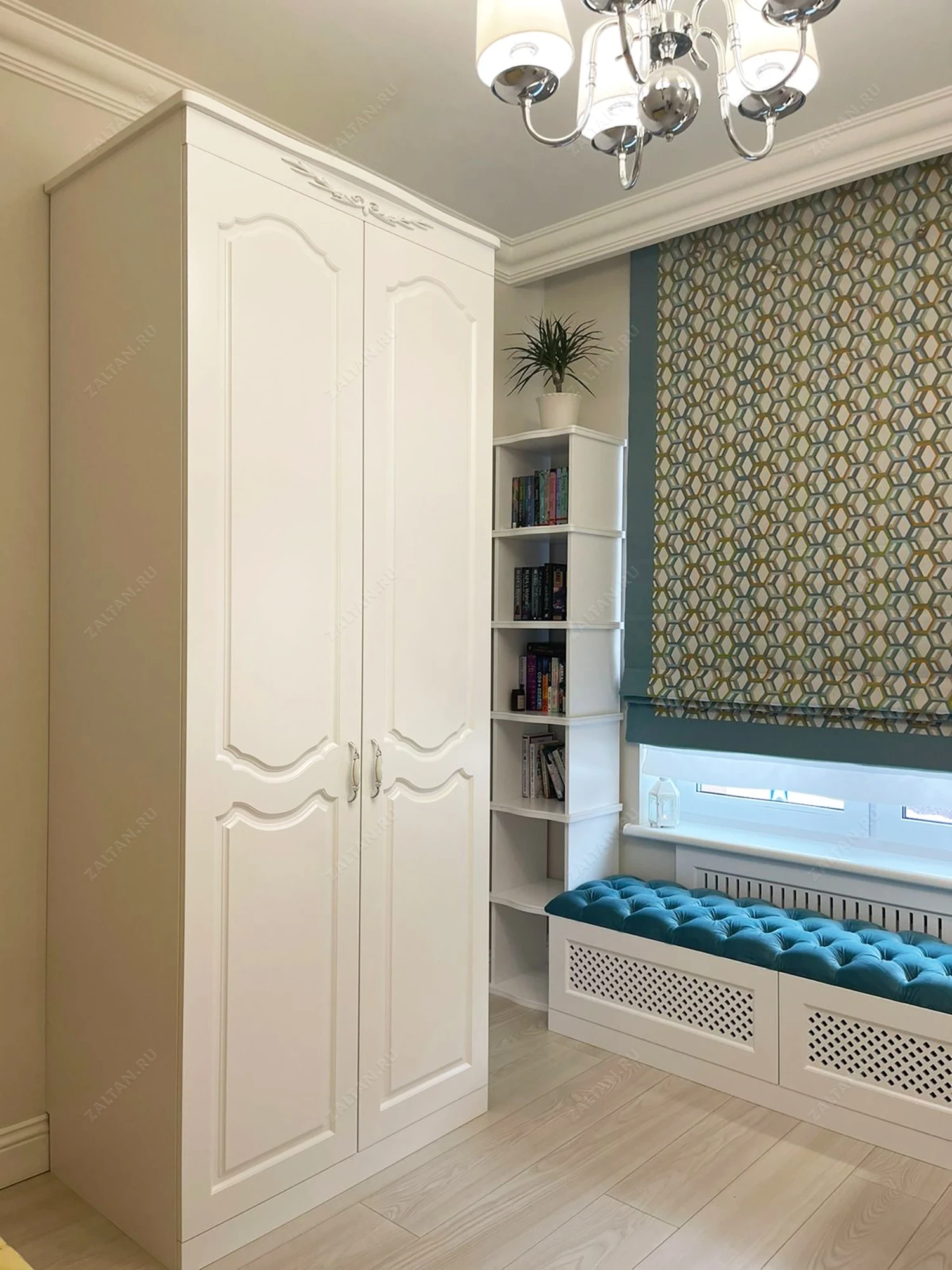 Элегантный классический шкаф "Маккой" для детской комнаты, выполненный в белом цвете. Изящная фрезеровка на МДФ-фасадах придаёт шкафу изысканность и визуальную лёгкость, что характерно для классического стиля. Фурнитура, дополняет дизайн, подчёркивает общую эстетику мебели и обеспечивает удобство использования.