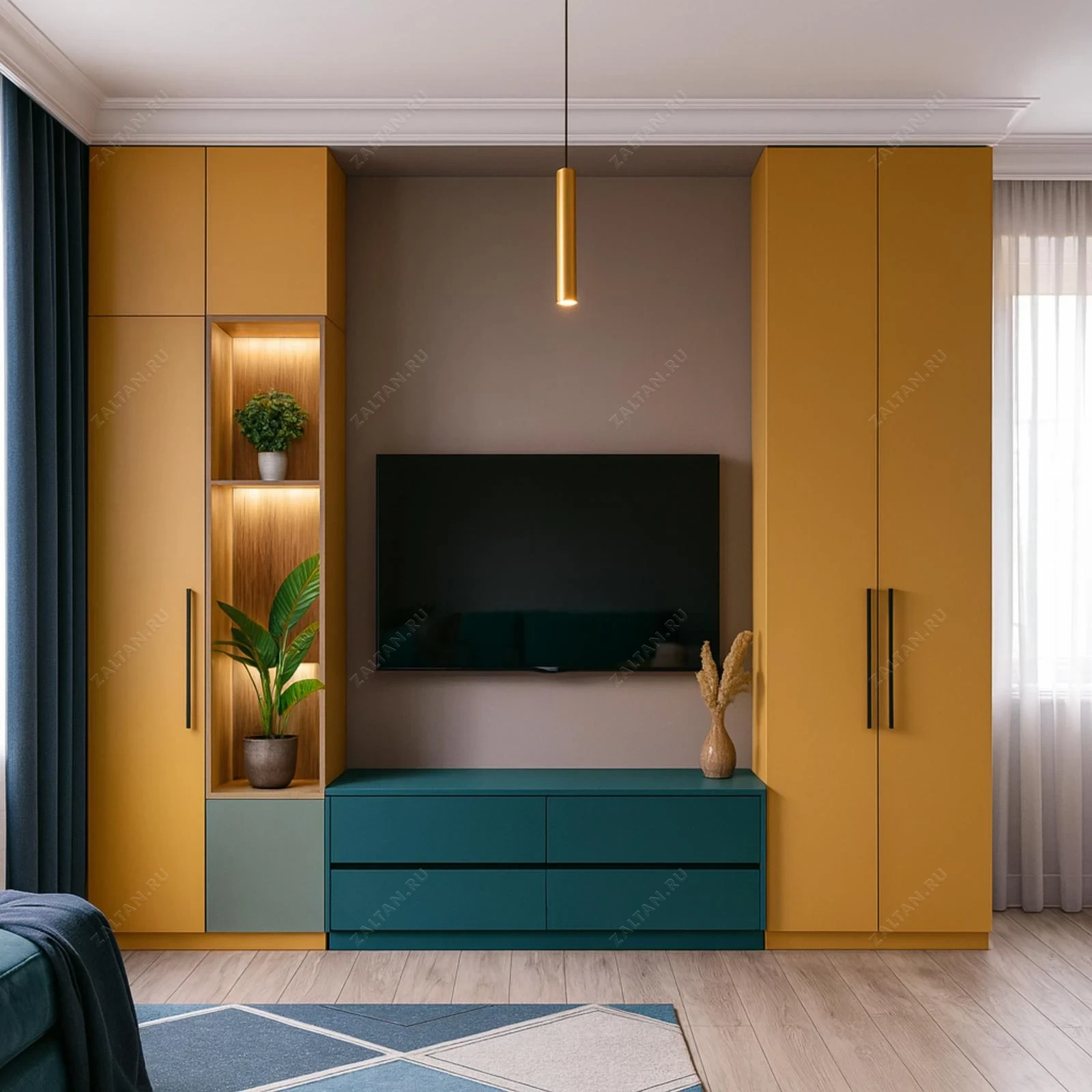 Описание: Изделие изготавливается под индивидуальные размеры на заводе — продуманная система хранения, выдвижные ящики и ниша под декор/растения. Подходит для гостиной и кабинета, возможны изменения планировки и материалов по пожеланию.