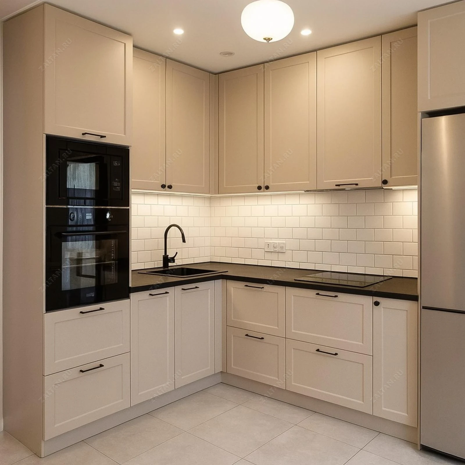 Индивидуальная угловая кухня с рамочными матовыми фасадами — решение для ценителей аккуратного скандинавского стиля и премиального качества. Изготовлена под заказ с упором на эргономику рабочей зоны: высокий встроенный блок для техники, глубокие выдвижные ящики и подсветка рабочей поверхности.