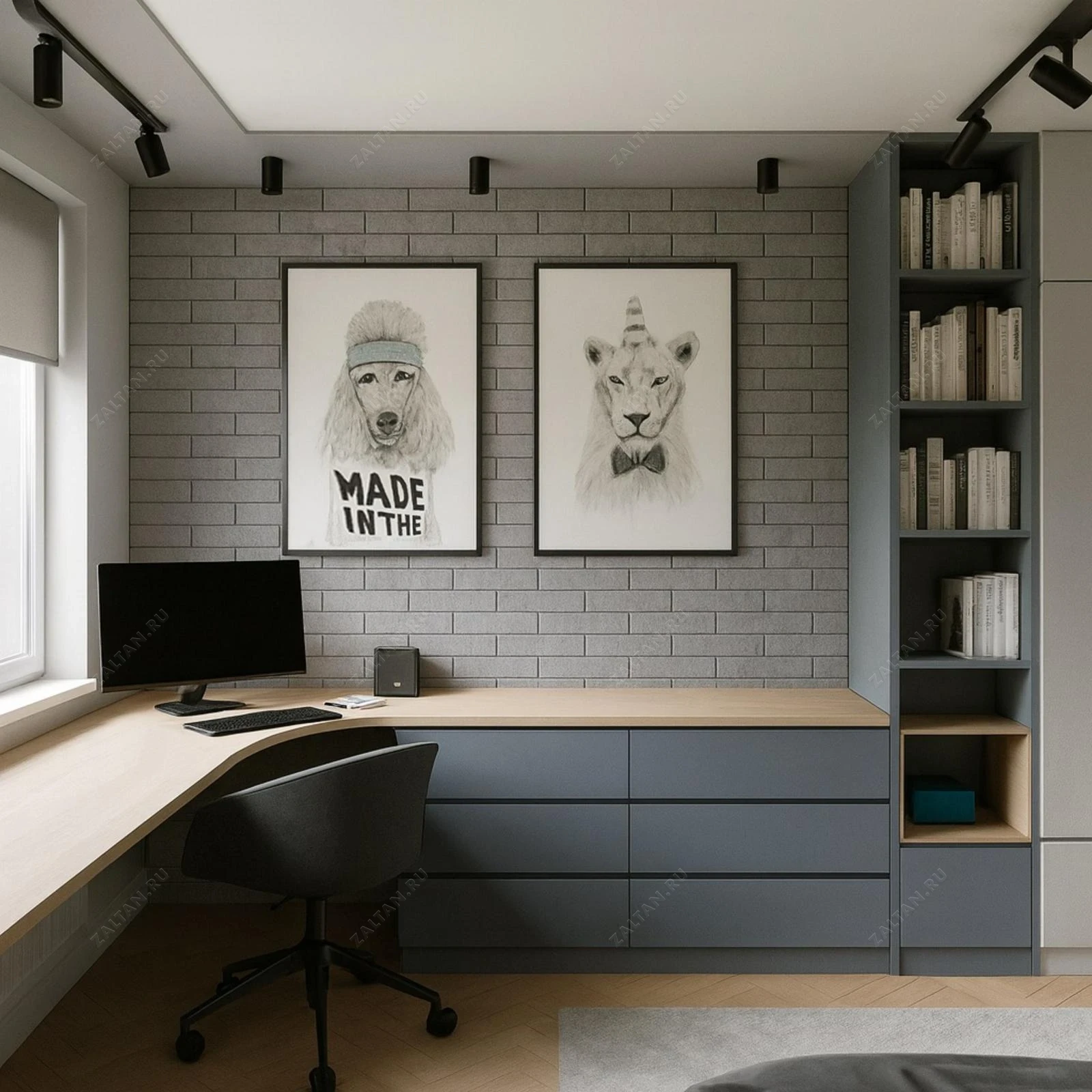 Рекомендуется для кабинета или спальни, где нужен аккуратный рабочий угол с большим объёмом хранения.