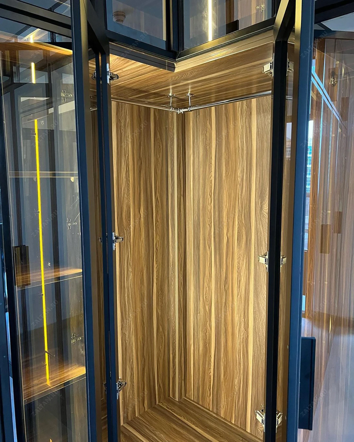 Угловой шкаф Эласон от компании ZALTAN станет стильным и функциональным элементом вашего интерьера, обеспечивая комфортное и организованное хранение всех ваших вещей.