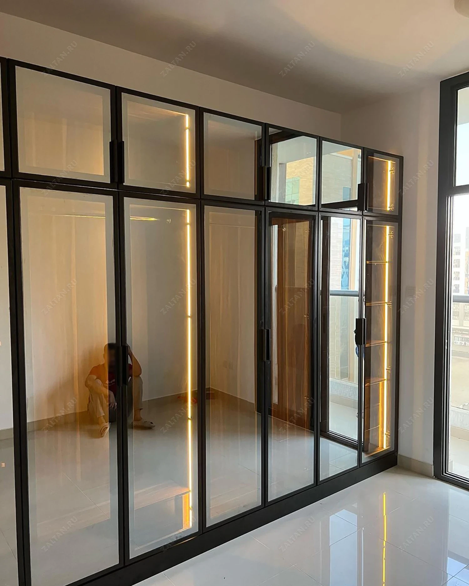 Шкаф Эласон выполнен в современном стиле, который подчёркивает его элегантность и функциональность. Фасады изготовлены из стекла, обрамлённого в чёрный алюминиевый профиль, что придаёт мебели стильный и изысканный вид. Современный дизайн шкафа делает его отличным дополнением к любому современному интерьеру.