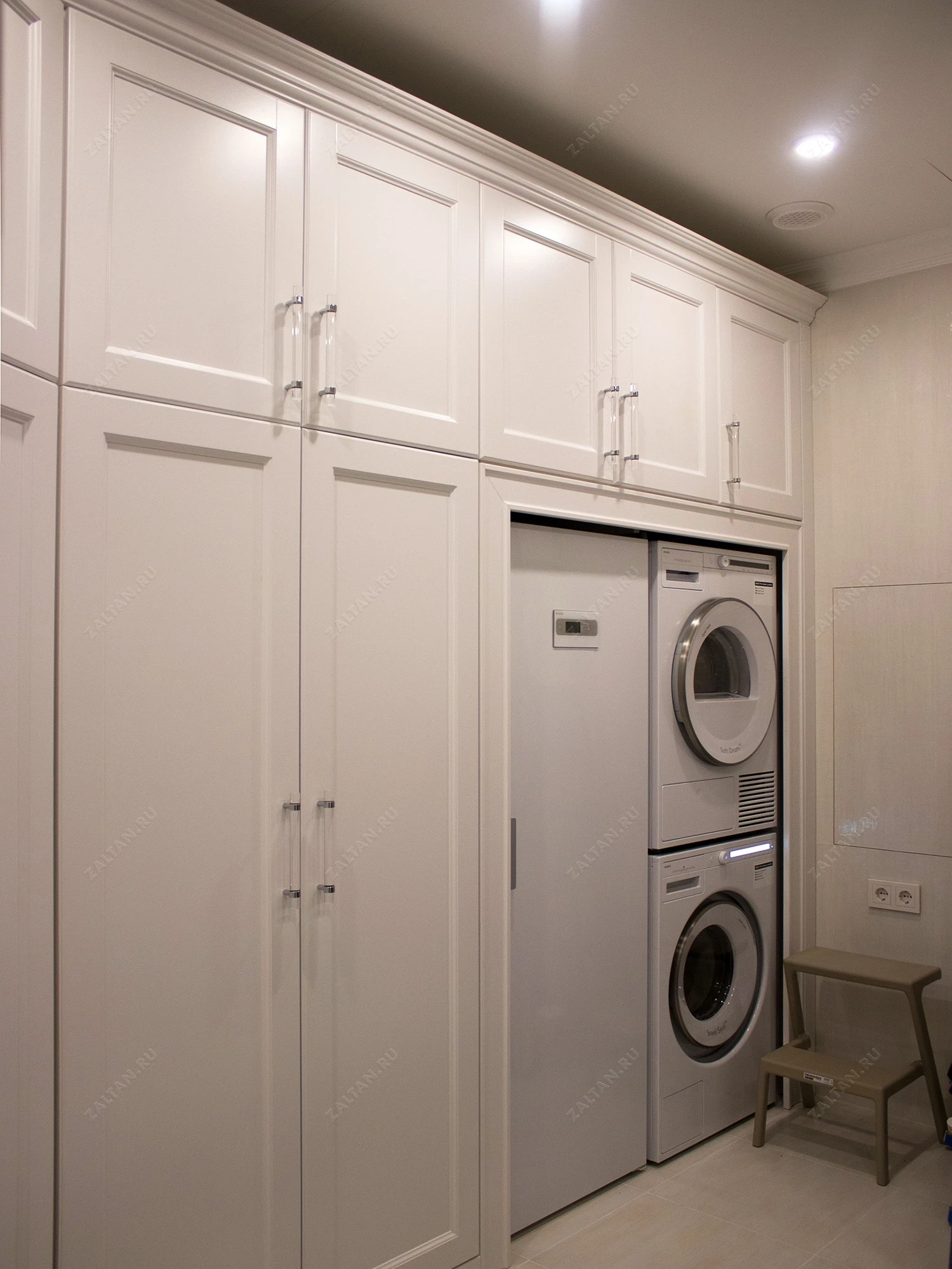 Функциональный угловой шкаф в постирочную комнату модели Алсен от компании ZALTAN. Это идеальное решение для организации пространства вокруг стиральной машины и сушильного аппарата. Шкаф выполнен в классическом стиле, что позволяет ему вписаться в интерьер любого дома, придавая ему нотки традиционной элегантности и утонченности.