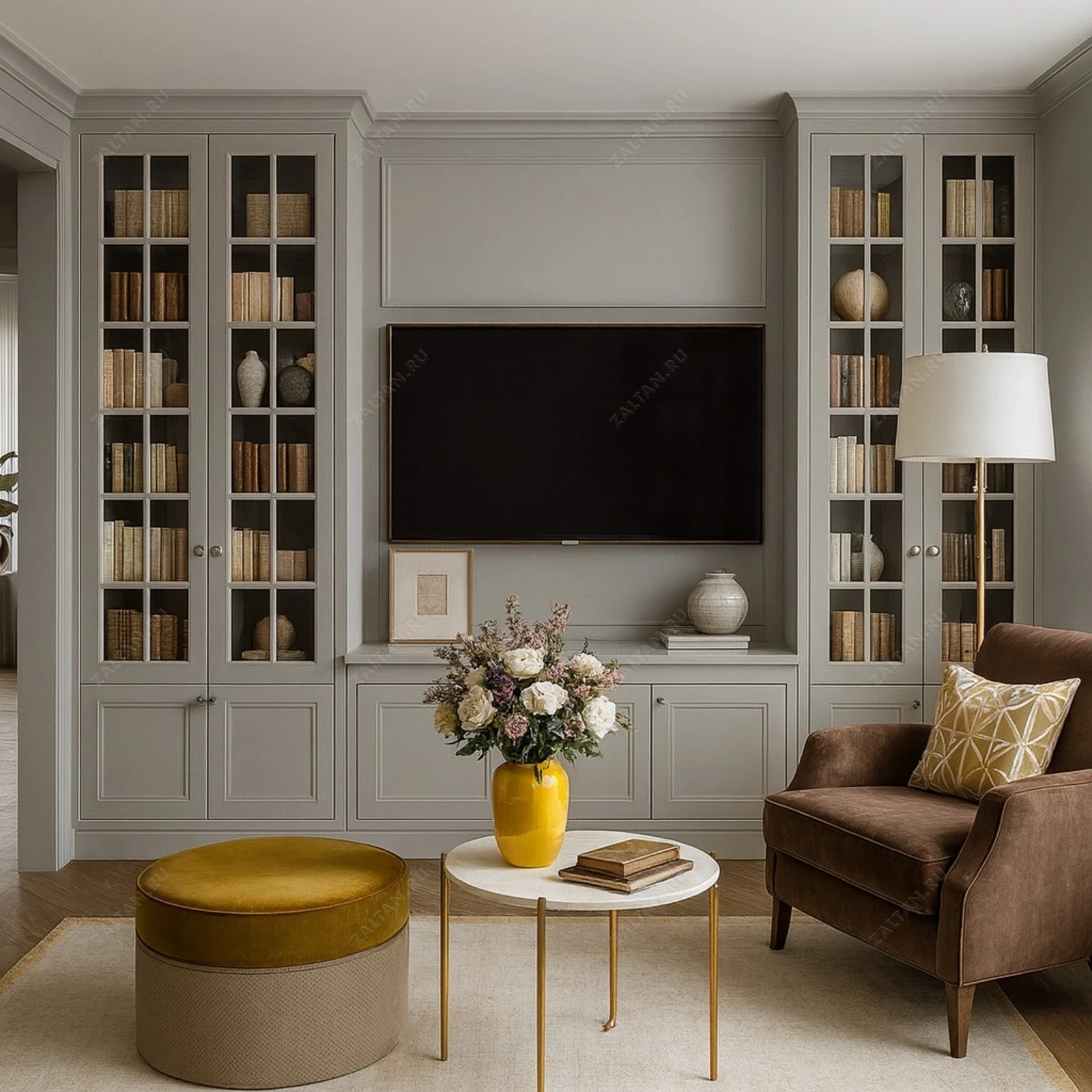 - Подходит для гостиной или библиотеки, изготавливается по вашим размерам и цветовому решению.