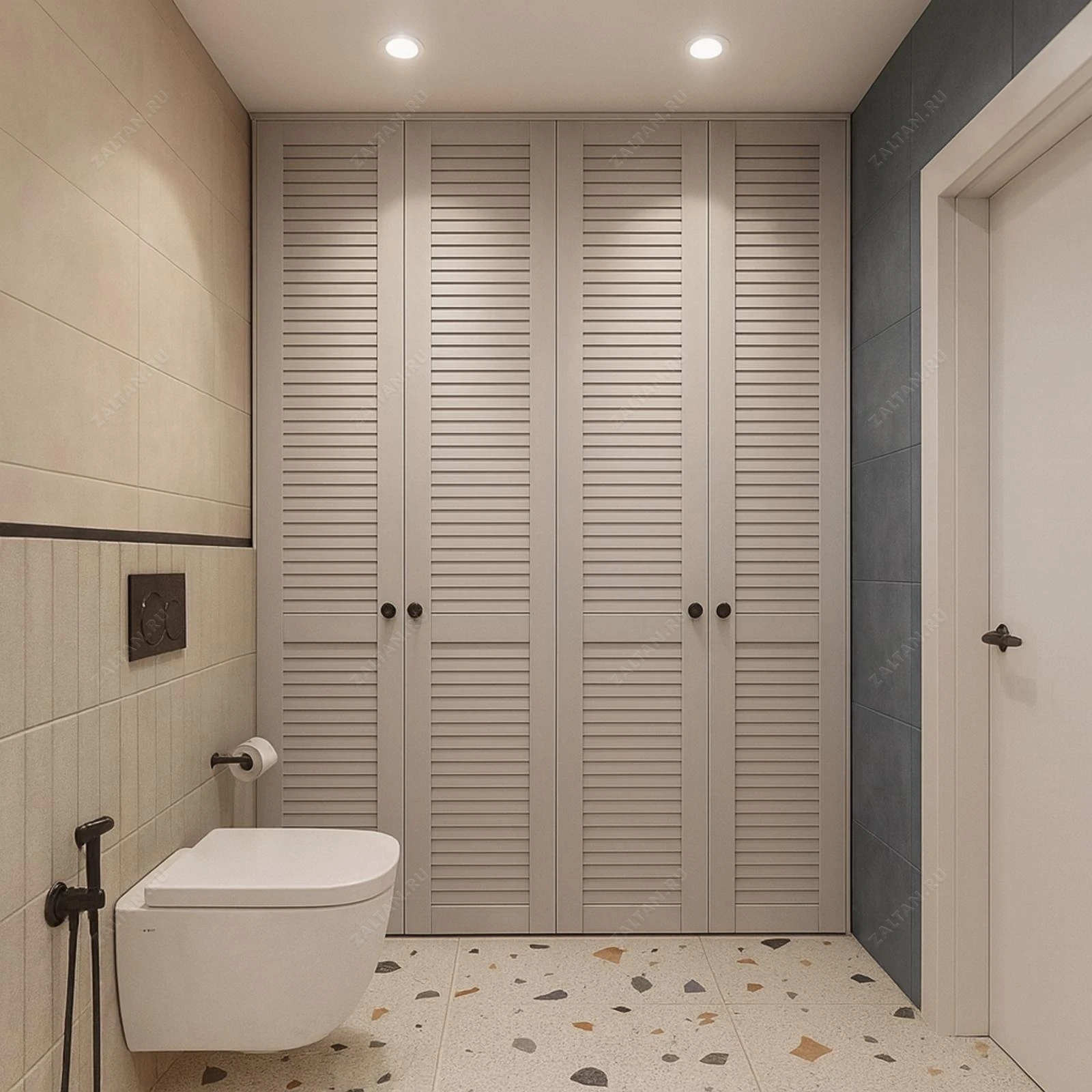 Элегантный встроенный шкаф с жалюзийными фасадами — решение премиум-класса для ванной и постирочной. Изготовим по индивидуальным размерам, с влагостойкой отделкой и продуманной внутренней планировкой.